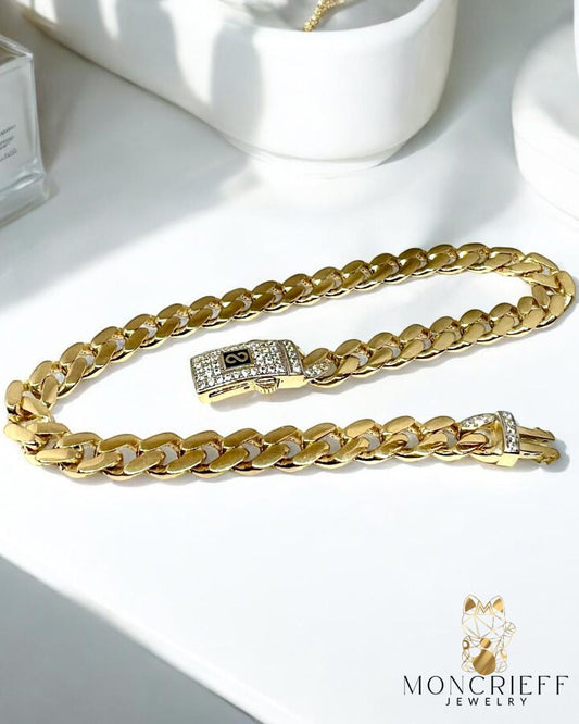 14K Italian Yellow Gold Monaco-Style Bracelet - 6.5mm, 8", with Box Lock & Cubic Zirconia